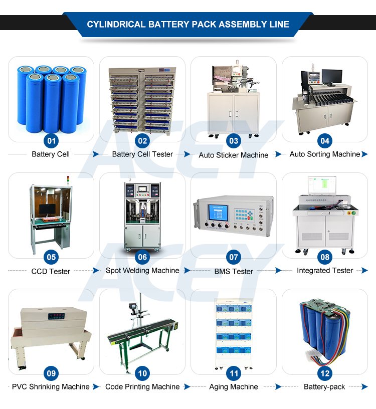 Acey A un ensemble de solution pour la batterie au lithium Pack, est engagé à fournir Ligne d'assemblage de cellules cylindriquesPour aider à améliorer la batterie Assembler Efficace.