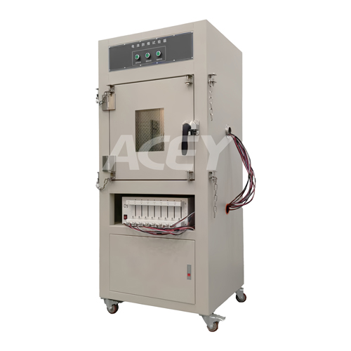 La surcharge désigne le dépassement de la tension maximale admissible d'une batterie pendant la charge, ce qui entraîne des réactions électrochimiques irréversibles, la production de gaz, ainsi que la dilatation et la déformation des électrodes.La chambre d'essai antidéflagrante ACEY pour la charge et la décharge des batteries est spécialement conçue pour les tests de surcharge et de décharge excessive, offrant un espace de protection sécurisé. Connectée à des testeurs de charge/décharge externes, elle protège les opérateurs et les équipements, répond à de nombreuses normes de sécurité nationales et permet de s'adapter aux besoins spécifiques de chaque test.